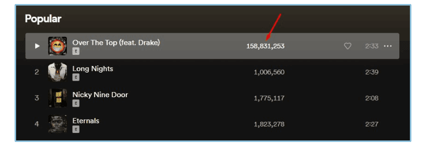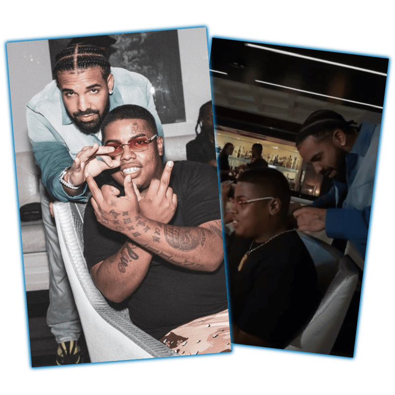 He has over 1.2 million active listeners on Spotify with a track called "Over The Top" featuring Drake with almost 150 million streams, which also made it to Billboard's Hot 100 and recently appeared as a feature on Drake's latest album "For All The Dogs".